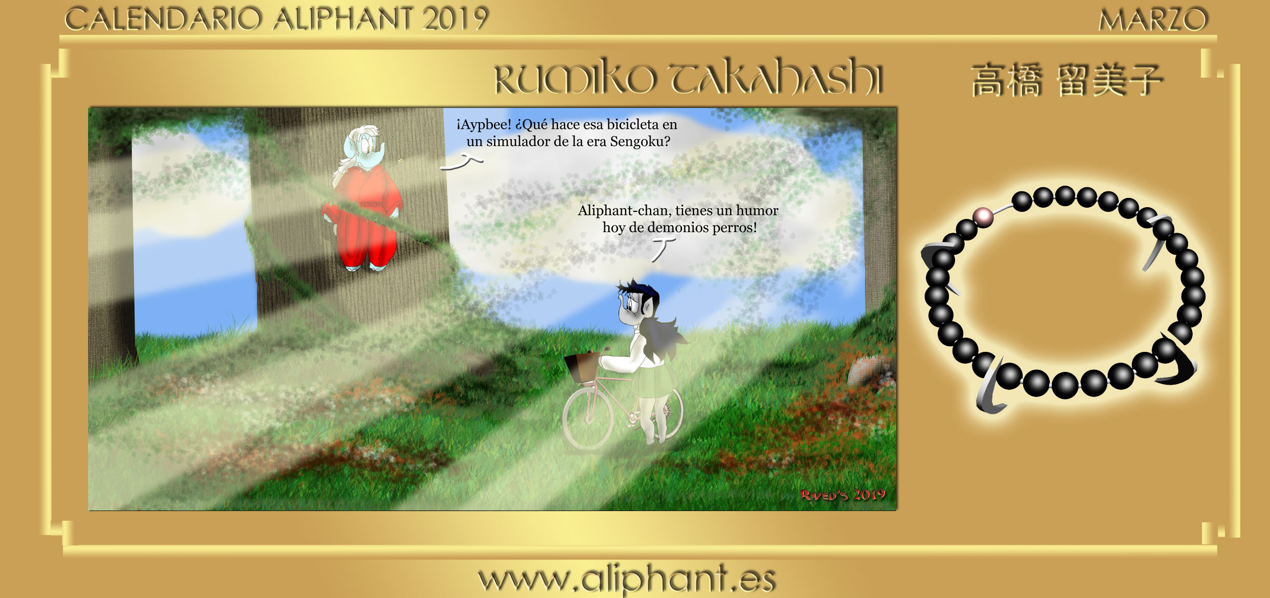 El rosario de la sacerdotisa Kaede mantiene al semidemonio Inuyasha bajo el control de Kagome. La esfera de los Cuatro Espíritus marca el principio del mes, las demás cuentas cada día restante del mes y los colmillos, la separación entre semanas.