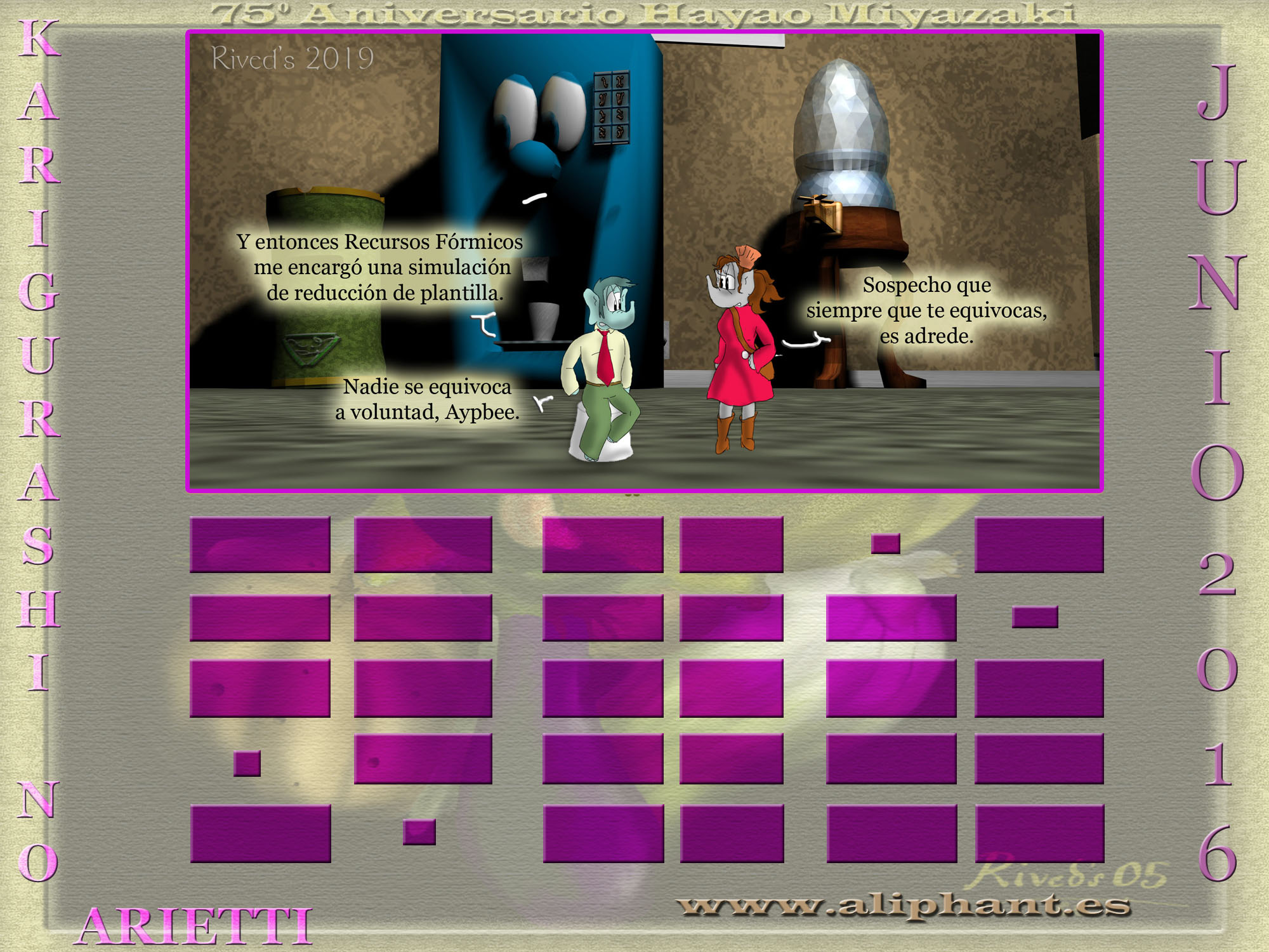 Los cuadros representan los días del mes en orden de izquierda a derecha y de arriba a abajo. Los domingos... son diminutos.